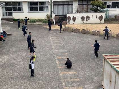 2月26日、学年末考査が終わり午後から部活動が再開しました。2週間ぶりとなる活動のため、校庭で基礎体力作りのアップから始めたり、けが防止の対応をしています。
