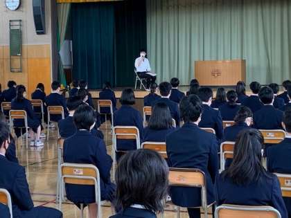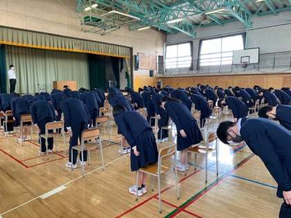 卒業式2週間前となり本日から3年生の卒業式練習が始まりました。学年主任より卒業式に向けての心構えについて全体に話があり、緊張感の中での式練習となりました。