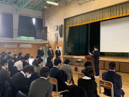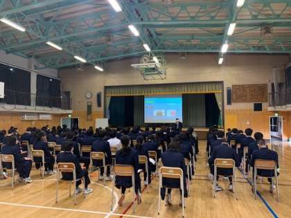 3月9日(火)5、6時間目、2学年では3名の講師の方が来てくださり、職業講話をおこないました。仕事の内容や選んだ理由、やりがいについてのお話を通して、働くことの喜びの大きさや責任の重さを学びました。中学生の皆さんに伝えたいこととして、物事に目的を持つことや自分の可能性を狭めないために今勉強することが大切といった様々なことを教えて頂きました。