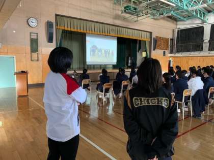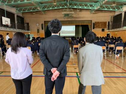 背中で伝える…「3年間の思い出動画」3年生 公開日 2021/03/16 更新日 2021/03/16 今日のできごと 3年生は合唱発表会のあと3年間の思い出を動画で鑑賞しました。懐かしい中1の頃から現在までの生徒たちの成長が感じられる動画に、3年生の先生たちの背中はどこか…。 いいね(0)