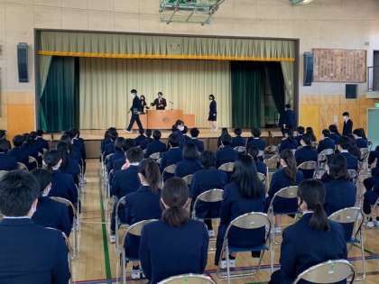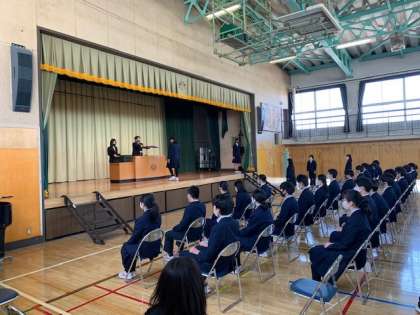 3年生は3月19日の卒業式に向けての卒業式予行練習を行いました。入退場や卒業証書授与などの動きの確認をしました。