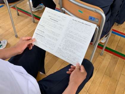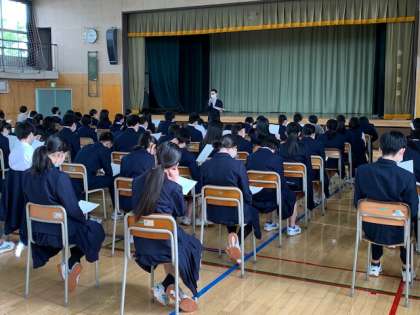 4月16日(金)、3年生は体育館に集まり、進路に向けてこれからの1年間をどのように計画していくか、進路担当よりガイダンスがありました。