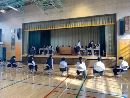 本日の生徒総会に向けて昨日の放課後にリハーサルを行いました。リモートでの総会は生徒も先生方も初めての試みなので、声の大きさや立ち位置など細かく確認していました。