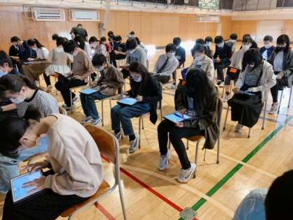 リモート授業に向けて 公開日 2021/05/08 更新日 2021/05/08 今日のできごと 5月8日(土)、2年生はロイロノートを活用し新様式での授業に向けて、操作方法やiPadを通して配布された課題に対して、他の生徒の意見を共有することなどを試行しました。 また3年生は、ロイロノートで進路に対する課題が出され週末に自宅から提出する取り組みが行われています。 いいね(1)