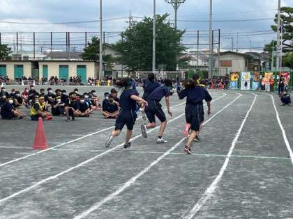 3年生全員リレー 公開日 2021/06/05 更新日 2021/06/07 今日のできごと 入場門からエネルギー全開! 円陣から大きなかけ声が聞こえます。中学校最後の全員リレー。仲間を信じてとにかく前へ。 いいね(0)