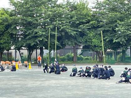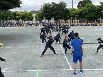 3年生棒引き 公開日 2021/06/05 更新日 2021/06/07 今日のできごと 誰よりも早く目の前の棒を自陣まで引き抜きます。戦いは棒一本につき2対2。勝ち名乗りは棒を垂直に立てます。3年生最後の学年種目です。盛りあがらないわけがない! いいね(0)