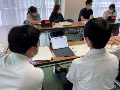 第1回ICT校内研修 公開日 2021/06/16 更新日 2021/06/16 今日のできごと 第1回ICT校内研修を実施しました。子どもたち自ら課題に向き合い、判断して行動して、それぞれの思いを描く「未来」を実現してほしいとの願いを込めて世田谷区が導入した「Qubena」を日頃の教育活動へ生かす方法など先生たちも体験し研修しました。 いいね(0)