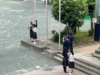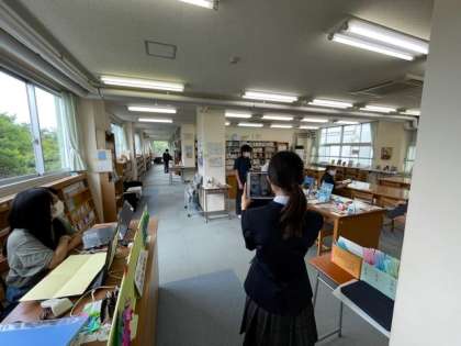 2年生は教科「日本語」で学校のコマーシャルを作成中です。コマーシャルの提供者は、どのような人たちにどのようなことを訴えたいかなどによって、どのようにコマーシャルの内容や構成を考えるのかを自分たちが作成することで学びます。