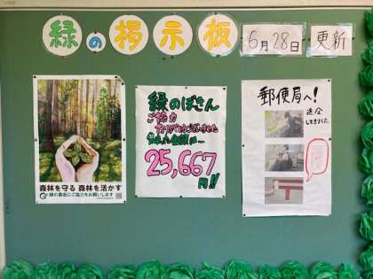 生徒会は、6月25日(金)に緑の募金を郵便局で送金しました。皆さんからお預かりした25,667円は植樹や間伐など国内の森林整備のほか、震災で被災した方々への支援、未来の担い手である子どもたちへの森林環境教育、また海外の緑化支援等にも使われます。