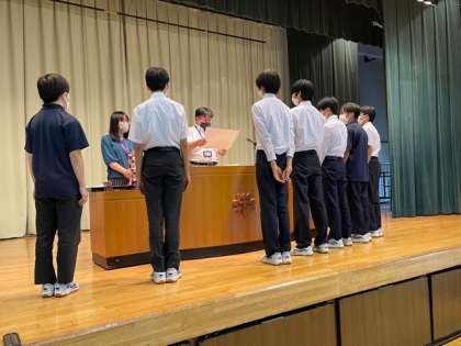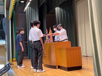 陸上部都大会出場、バドミントン部夏季選手権それぞれの表彰です。