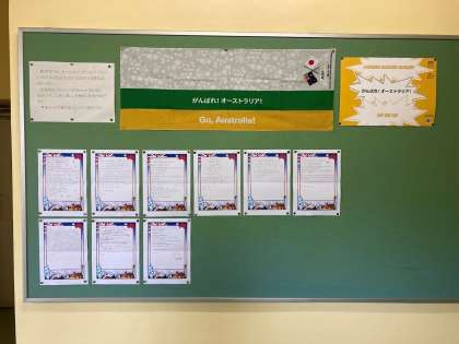 また、オーストラリア大使館よりスポーツ応援のタオルとボードを頂きました。そちらも掲示しています。