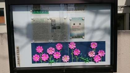 美術部員が協力して、コスモスの装飾をしてくれました。よく見ると小さな昆虫も登場しています。お立ち寄りの際にご御覧ください。