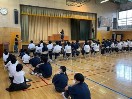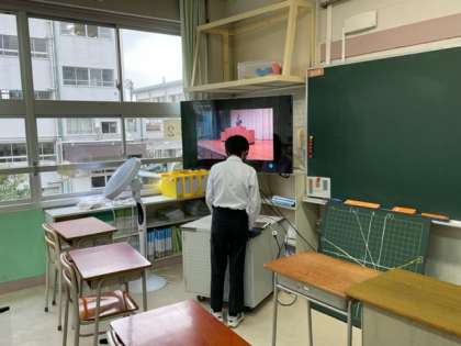放課後の体育館では明日に向けてリハーサルと放送委員がzoomの準備を行なっていました。