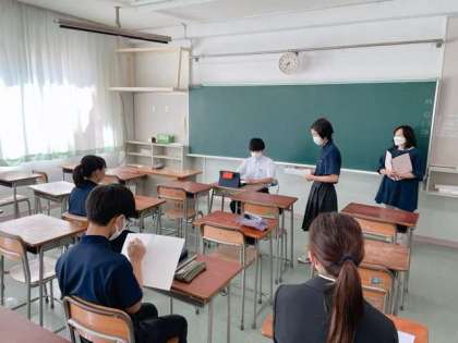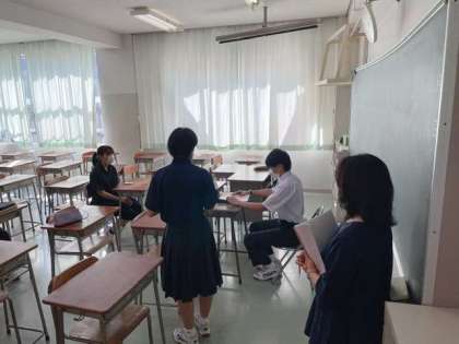 今朝の生徒会朝会は、新生徒会会長からの挨拶と本日から始まる教育実習生の自己紹介をzoomで行いました。