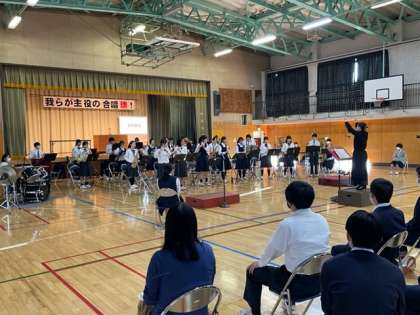 学系発表会舞台発表の部 公開日 2021/10/23 更新日 2021/10/23 今日のできごと 合気道部、演劇部、ボランティア部は録画した動画を教室で鑑賞しました。吹奏楽部は体育館で3年生のソロを中心に演奏してくれました。 いいね(0)