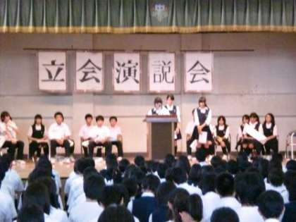 先週から行われていた生徒会役員選挙の選挙活動も16日が最後。午後には、立会演説会が行われ、立候補者と応援者が最後のお願いをしていました。その後、各教室で投票が行われ、即日開票の結果、立候補者全員が信任されました。生徒会長をはじめ、6人の役員のみなさん。来年の前期まで緑丘中学校の生徒会を活発にするため力を尽くしてください。