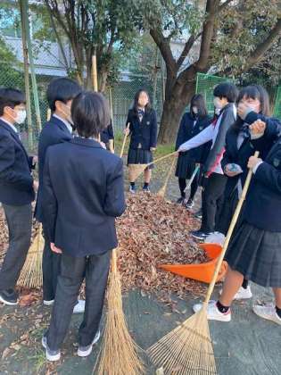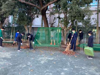 落ち葉掃きボランティア その3 公開日 2021/11/30 更新日 2021/11/30 今日のできごと 2年生の担当箇所の様子です。朝練を終えた部員たちも参加しています。(上段) 1年生は保育園側のグランドで落ち葉を集めています。(下段) いいね(0)