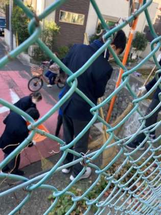 ボランティア部は、グラウンド外の住宅側を顧問とともに清掃しています。