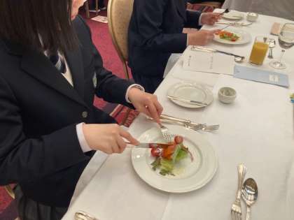 3年生校外学習 公開日 2022/03/10 更新日 2022/03/10 今日のできごと 両国ホテルでのテーブルマナー講習が始まりました。100人を超える会食は壮観で、生徒たちの背筋もぴーんとしています。 マナーを教わりながら、食事をしていきます。 食事が済んだ人は、フォークとナイフの向きに気をつけながら下膳していただきます。 いいね(0)
