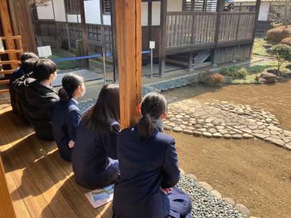 「教科日本語」の授業で学んだ縁側の実物に触れています。