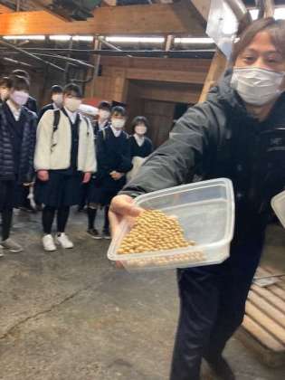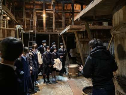3年生校外学習2日目 公開日 2022/03/11 更新日 2022/03/11 今日のできごと 醤油蔵に入りました。発酵食品を作るためには時間がかかります。こちらの樽は190年前から使われています。 いいね(0)