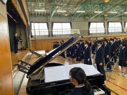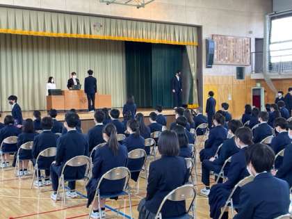 卒業式予行 公開日 2022/03/16 更新日 2022/03/16 今日のできごと 卒業式間近となりましたが、本日3年生は予行を行いました。コロナ対策のなかで限られた練習時間と全校生徒が集まれない状況ですが、3年生らしい集中力で予行を行いました。 いいね(0)