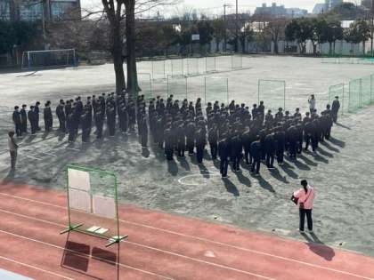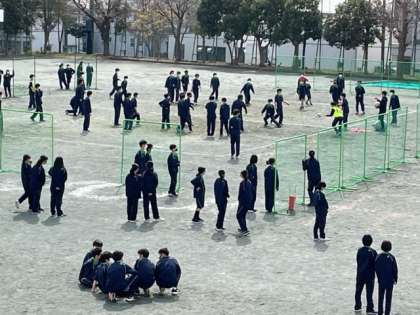 校庭では1年生がクラス総当たりでドッチボール大会を行なっています。晴れ間の中で応援をする声が職員室にも聞こえてきます。