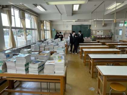 1年生教科書配布 公開日 2022/04/08 更新日 2022/04/08 今日のできごと 1年生は本日1校時、教科書を配布しました。9教科の教科書や資料などを合わせるとかなりの高さとなります。教室ではそれぞれの教科書のページを興味深くめくっていました。 いいね(0)