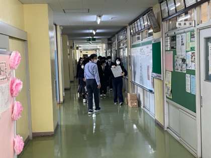 1年生校内巡り 公開日 2022/04/08 更新日 2022/04/08 今日のできごと 教科書配布後はクラスごとに校内巡りを実施しました。特別教室の場所や職員室扉のノックの仕方や先生の呼び方など、学校生活の基礎となる行動を学びました。 いいね(0)