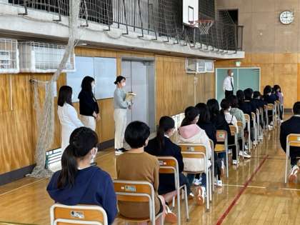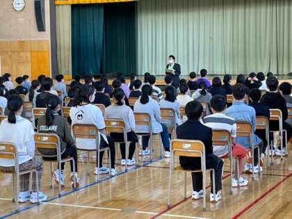 本日1校時、1年生は学年全員が集まり学年集会を行いました。学年主任から、改めて緑中生としての心構えについて話がありました。緑丘中のスローガン、「一生懸命がかっこいい」をすべての場面で自主的に表現できるようになろうとの呼びかけに、全員が大きな声で返事をしていました。