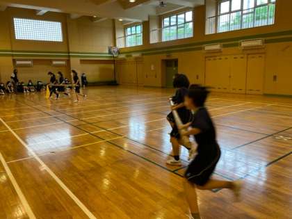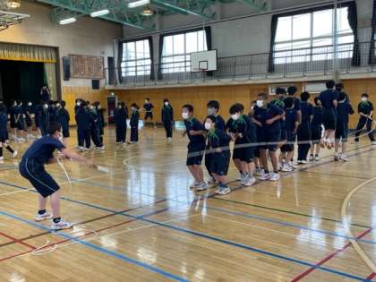 あいにくの雨で! 公開日 2022/05/17 更新日 2022/05/17 今日のできごと 5月17日6校時、晴れていれば校庭で学年種目の練習でしたが、「さぁこれから」っという時に雨。急遽室内での練習となりました。 1年生は格技室で「台風の目」、2年生は体育館で「大縄跳び」、3年生は教室で「全員リレー」の作戦会議を行なっていました。 いいね(0)