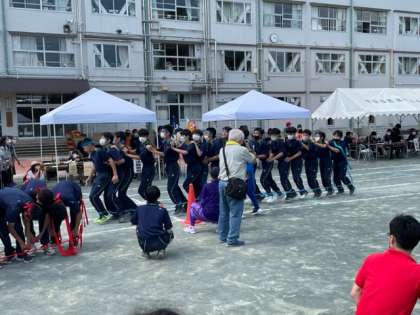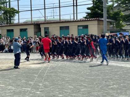 3年学年種目「ムカデ競争」。たとえ躓いたって絶対に折れないことを緑丘中で学んだから。ただがむしゃらに、みんなとゴールをめざす!