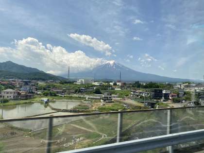 富士山がくっきり見えて来ました。もうすぐ河口湖到着です。