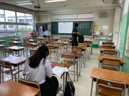 6月22日から24日の3日間、期末考査が行われます。初日の7時40分の教室にはすでに登校して試験勉強をしている生徒も見られました。