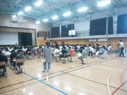 今日は、夏休みの宿題として行う上級学校訪問について、心構えとマナーを学びました。