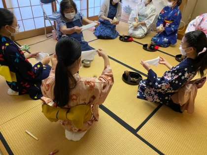 【速報】茶道部 公開日 2022/08/04 更新日 2022/08/04 今日のできごと 茶道部では夏休みに浴衣の着付けをして、お稽古をします。 今日は6名が浴衣の着付けを習いました。その後、1年生は基本の盆点前を行いました。 2学期も美しい所作のお点前ができるように練習していきたいと思います。 いいね(0)