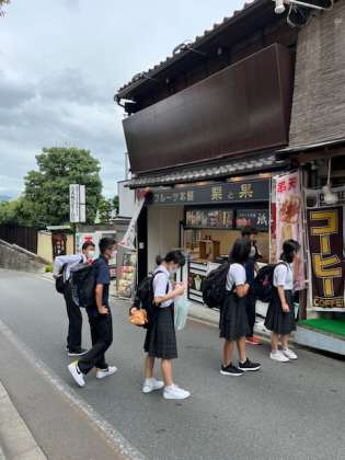 修学旅行 公開日 2022/09/08 更新日 2022/09/08 今日のできごと チェックポイントの清水寺を通過し、清水道を下りながら次の見学地を目指しています。 おやつタイムを挟みつつ、班で協力して行動しています。 いいね(0)