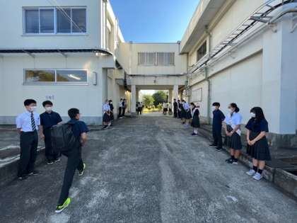 中間考査が終わり、今週28日(水)に行われる生徒会役員選挙の向けて、立候補者・応援演説者による朝の挨拶運動が始まりました。挨拶運動は、今日から三日間です。顔と名前を全校生徒に覚えてもらうため、朝早くから大きな挨拶の声が響いています。