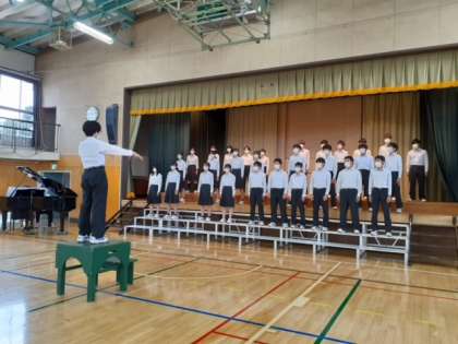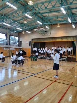 3年生リハーサル 公開日 2022/10/12 更新日 2022/10/12 今日のできごと 10月12日の5校時、3年生は体育館で合唱コンクールのリハーサルを行いました。入退場や舞台の立ち位置などを確認後、課題曲の「大地讃頌」を音楽科の先生から指導を受け、3年生らしい力強い歌声が職員室まで聞こえてきました。 いいね(0)