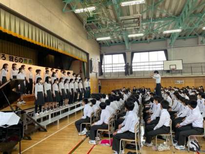 合唱コンクール 公開日 2022/10/22 更新日 2022/10/22 今日のできごと 「走る川」 オープニングは3年3組。川の流れを自分たちを擬えて、力強くそして優しく歌いきりました。素晴らしい! いいね(0)