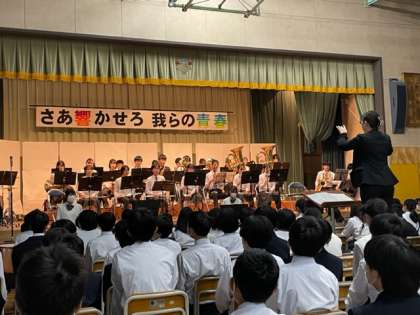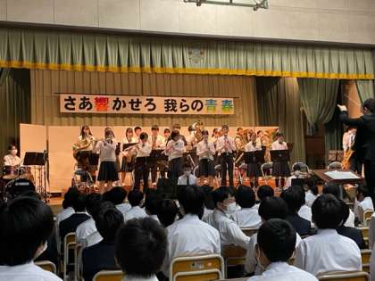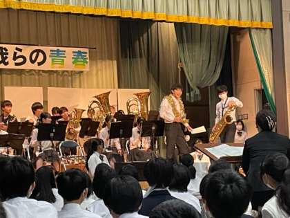 吹奏楽部が素晴らしい演奏を聞かせてくれました。間に楽しいスピーチなどをはさみ、最後はルパン三世で会場が熱気で包まれました。