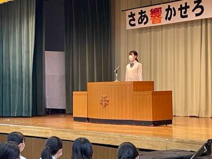 副実行委員長からは、3年間で初めての全校生徒が体育館で集まることに感動したと話がありました。コロナ感染症のなかで一生懸命我慢した気持ちが後輩たちへ伝わりました。
