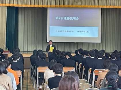 第2回進路説明会 公開日 2022/10/28 更新日 2022/10/28 今日のできごと 10月28日第2回進路説明会を開催しました。昨年度に引き続き、多岐にわたる変更があり、3年生も保護者の方々もメモをとりながらの説明会となりました。 いいね(0)