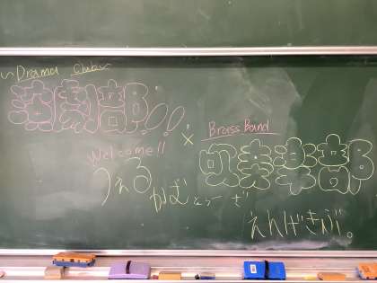 今日は、吹奏楽部の基礎練習の1つであるリトミックを、顧問の先生の指導で演劇部にも御教授いただきました。吹奏楽部のみなさんを視聴覚室に招いて、合同での取り組みです。