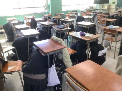 避難訓練 予告なし、昼休み中
