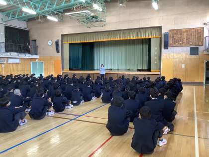 今日の1時間目は学年集会。3学年所属の先生方から一言ずつ挨拶していただきました。「悔いの残らないように」「思いやりの心をもって」「成長し続けて」と、これからの1年間の指針となる、様々なお話の数々。気持ちを新たに、頑張ろうと意気込んだ生徒も多かったようです。