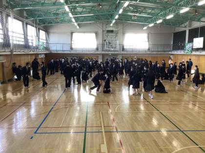 後半はグループエンカウンター。今まで話したことのない人とも声掛け→じゃんけん→質問と話す機会ができ、相手のことを知るよい機会になったと思います。生徒達がニコニコしながら取り組んでいる様子が印象的でした。これから1年間、学び合い、助け合いながら頑張っていきます。