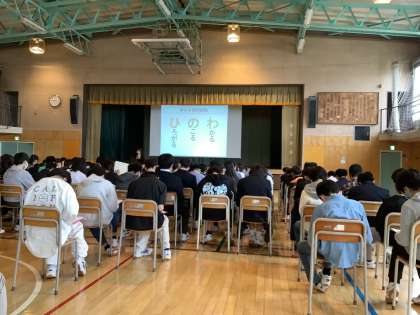1校時は「ネットリテラシー醸成講座」として,ゲストティーチャーをお招きしての講演会を行いました。