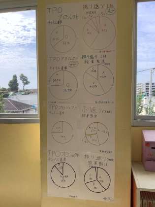 1学期に学級委員が中心となって取り組んだ「TPOプロジェクト」の結果を整理し,廊下に掲示しました。今後の授業,生活に生かしていけると良いです。