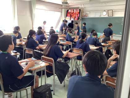 写真はテスト後の様子です。ノートやワークを提出したり、行事に向けての準備をしたりと、リラックスした様子が見られました。